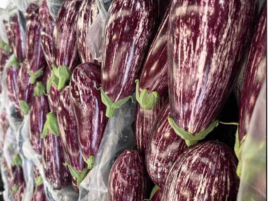 Selección · Berenjena, control visual de calidad.
