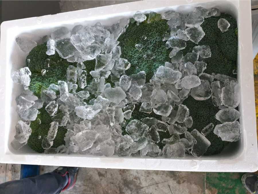 Frío · Brócoli con hielo para mantener frescura.
